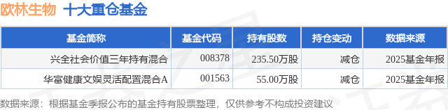 重仓欧林生物的公募基金请见下表: