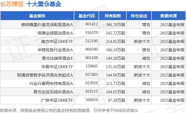 重仓长芯博创的前十大公募基金请见下表:
