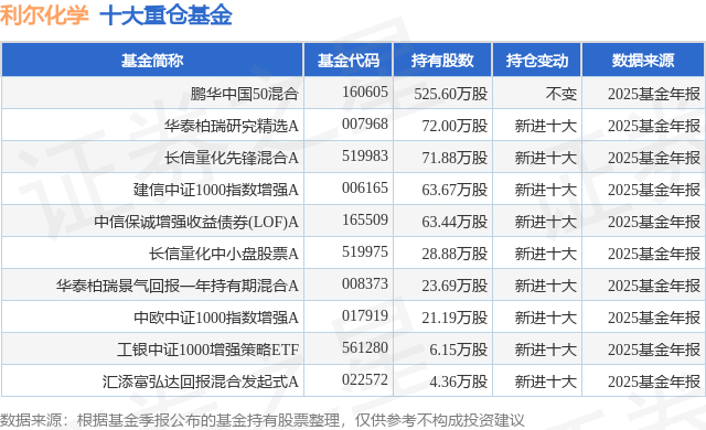 重仓利尔化学的前十大公募基金请见下表: