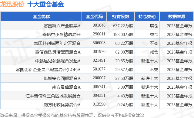 重仓龙迅股份的前十大公募基金请见下表: