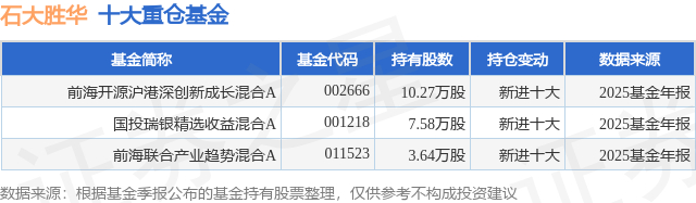 根据2025基金年报公募基金重仓股数据,重仓该股的公募基金共3家,其中持有数量最多的公募基金为前海开源基金的前海开源沪港深创新成长混合A。前海开源沪港深创新成长混合A目前规模为2.17亿元,最新净值1.424(3月25日),较上一交易日上涨1.5%,近一年上涨1.57%。该公募基金现任基金经理为章俊。章俊在任的基金产品包括:前海开源祥和债券A,管理时间为2021年3月12日至今,期间收益率为35.17%;前海开源裕瑞混合A,管理时间为2021年12月28日至今,期间收益率为-6.28%;前海开源沪港深汇鑫混合A,管理时间为2024年4月24日至今,期间收益率为17.55%。