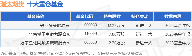 重仓瑞达期货的公募基金请见下表: