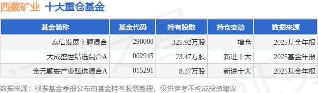 重仓西藏矿业的公募基金请见下表: