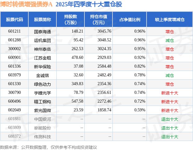 根据2025基金年报公募基金重仓股数据,重仓该股的公募基金共2家,其中持有数量最多的公募基金为博时基金的博时转债增强债券A。博时转债增强债券A目前规模为11.04亿元,最新净值2.3522(3月27日),较上一交易日上涨1.02%,近一年上涨24.51%。该公募基金现任基金经理为过钧 高晖。过钧在任的基金产品包括:博时信用债券A/B,管理时间为2009年6月10日至今,期间收益率为316.77%;博时新收益A,管理时间为2016年2月29日至今,期间收益率为235.45%;博时双季鑫6个月持有混合A,管理时间为2021年1月20日至今,期间收益率为10.61%;博时浦惠一年持有期混合A,管理时间为2022年2月17日至今,期间收益率为25.88%。高晖在任的基金产品包括:博时稳健回报债券(LOF)C,管理时间为2023年10月20日至今,期间收益率为11.79%;博时可转债ETF,管理时间为2023年10月20日至今,期间收益率为26.58%。