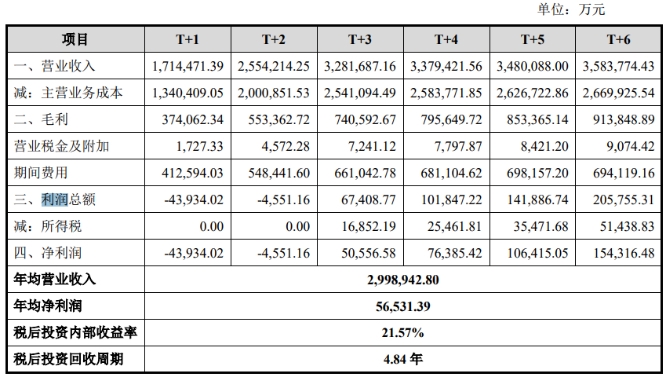 根据永辉超市的测算,其预计改造项目在T+1年为亏损,T+2年亏损大幅收窄,T+3年以后可以实现盈利,效益测算期间年平均净利润为5.65亿元。