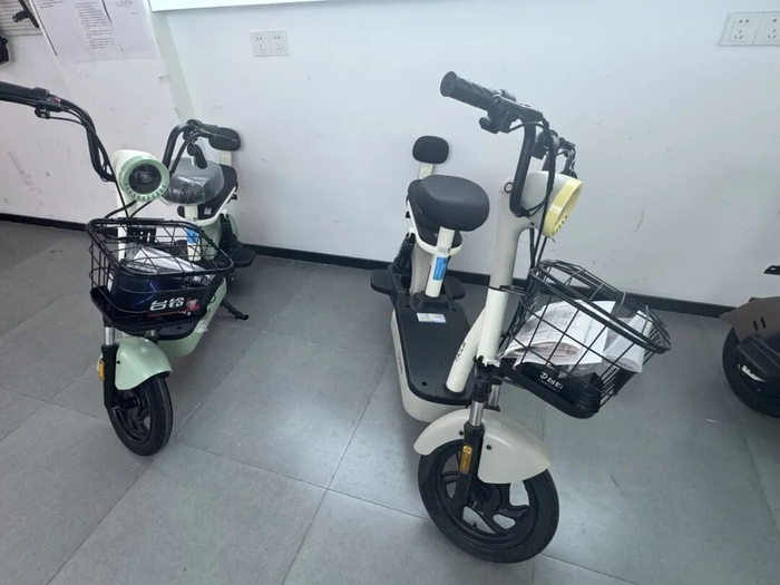 当记者提出想要空间更大的车型时,店员又引荐了另一款台铃新国标电动车:“这款售价3699元,驾乘体验更舒适,车身尺寸也更大,储物篮可以后续自行加装。”