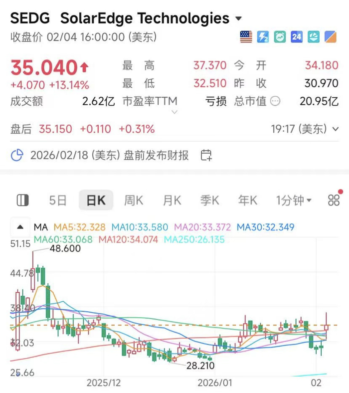受“SpaceX团队考察中国光伏产业链”的消息影响,美股光伏板块隔夜全线大涨。其中微型逆变器制造商Enphase Energy涨38.60%,SolarEdge涨13.14%,光伏组件龙头晶科能源涨8.66%。