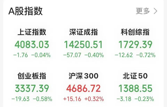 今日早盘,A股市场延续震荡态势,保险、券商等大金融板块整体升温,带动沪指相对强势。截至午间休市,上证指数报4083.03点,跌0.04%;深证成指跌0.40%,创业板指跌0.58%,科创综指跌0.72%。