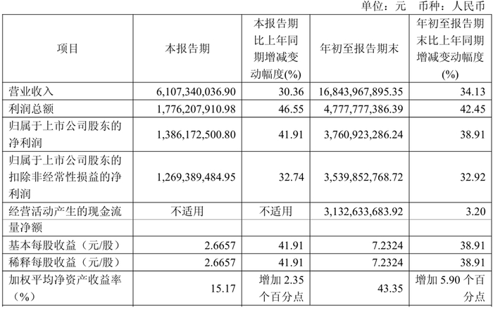 中信证券(600030.SH)发布2025年第三季度报告,报告显示,公司第三季度实现营业收入227.75亿元,同比增长55.71%;归属于母公司股东的净利润94.40亿元,同比增长51.54%。年初至报告期末,公司营业收入558.15亿元,同比增长32.70%;归属于母公司股东的净利润231.59亿元,同比增长37.86%。业绩变动主要由于营业收入同比增加较多,包括经纪业务、投资银行业务、资产管理业务及投资交易等业务收入增加。