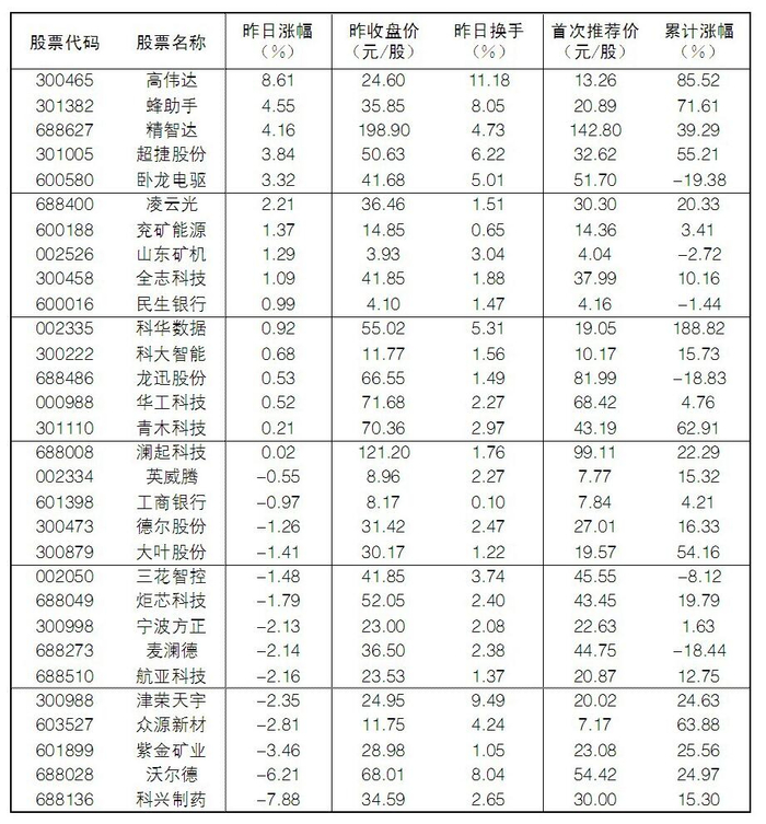 大众30指数成份股中,17日涨幅前五位的分别是高伟达、蜂助手、精智达、超捷股份、卧龙电驱,涨幅分别为8.61%、4.55%、4.16%、3.84%、3.32%;跌幅榜上,科兴制药、沃尔德、紫金矿业、众源新材等跌幅居前。
