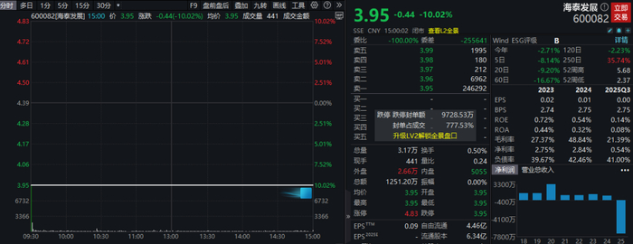 2025年12月5日,因交易双方尚未就交易对价、交易方式等关键交易条款达成一致,海泰发展决定终止本次交易事项。2025年12月8日,该股股价“一字”跌停。