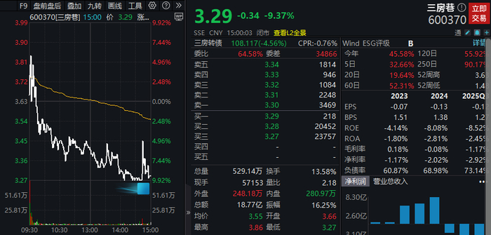 三房巷“五连板”后逼近跌停