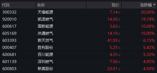 华源证券此前发布研报称,国内增储上产工作持续推进,预计国产气量将稳步增长。同时,地缘政治冲突推动油气价格走高,国产气能源保供作用日益突出。