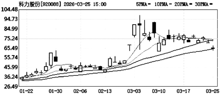 25日,科力股份股价迎来大幅调整,截至收盘下跌7.26%,收于65.69元/股,换手率26.17%,成交5.45亿元,位列北交所个股成交额之首。