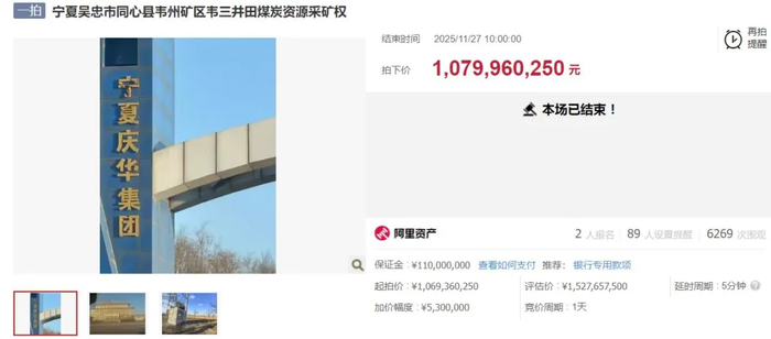 2025年11月27日,淘宝网司法拍卖网络平台显示,在北京金融法院的组织拍卖当中,“宁夏吴忠市同心县韦州矿区韦三井田煤炭资源采矿权”被宁夏朔方金乌能源公司拍下。