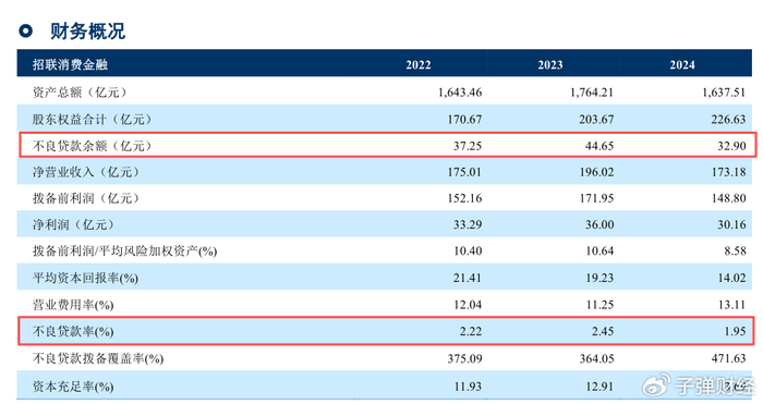 2024年.招联消金不良双降,不良贷款余额32.90亿元,不良贷款率下降至1.95%。