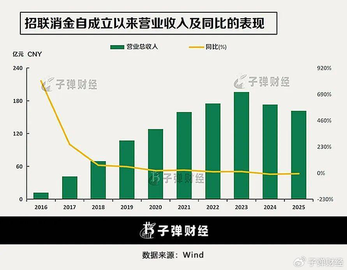 「子弹财经」注意到,自2022年招联消金已经显现业绩增速放缓趋势。