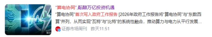 与此同时,2026年重磅会议上,首次把“算电协同”,写入政府工作报告,明确列为新基建工程,标志其从地方试点、部门政策正式上升为国家战略部署。
