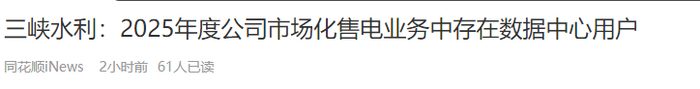 算电协同:公司在互动平台上明确表示,2025年度公司市场化售电业务中存在数据中心用户,2026年度尚不存在为数据中心客户售电情况,后续水电已经有望向三峡东岳庙数据中心供电。