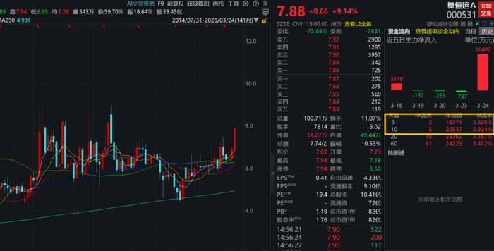 股价位置:今年股价涨幅不到20%,目前处于底部位置,周线上已经形成多头排列,底部进一步夯实,在算电协同爆发下,公司股价有望迎来估值修复。公司股价仅7元附近,主力资金暴力抢筹2亿元。