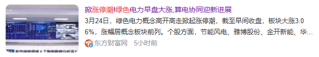 今天更是集体大涨,绿色电力概念高开高走掀起涨停潮,板块大涨超4%,节能风电、雅博股份、金开新能等24股涨停。
