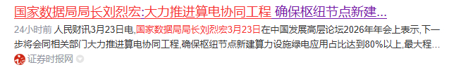 国家数据局局长刘烈宏3月23日表示,下一步将会同相关部门大力推进算电协同工程,确保枢纽节点新建算力设施绿电应用占比达到80%以上。