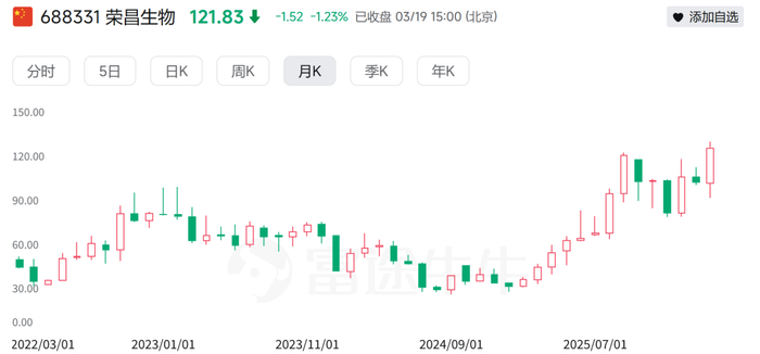 3月19日,在AH指数普遍低迷的背景下,A股荣昌生物的股价创下了上市以来的历史新高。
