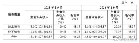 渠道改革方面,线上营收占比从2020年的14.8%跃升至2025年三季度的20.42%,抖音单渠道年销售额突破25亿元;线下则“砍加盟扩直营”,直营门店从2020年的832家增至2025年三季度的1583家,虽加盟店净关264家,但整体渠道掌控力显著提升。