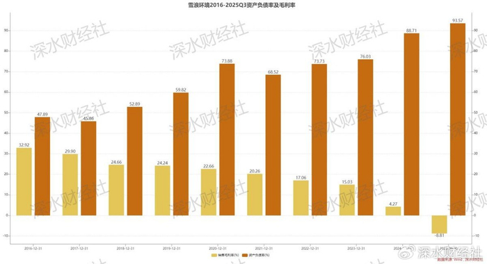 截至2025年中报,雪浪环境有息负债达11.62亿元,其中短期借款5.89亿元,而流动比率仅0.8,货币资金占流动负债比例不足15%。到2025年9月末,公司资产负债率高达93.57%。