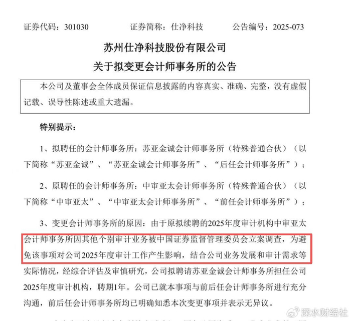 讽刺的是,仕净科技当初更换审计机构,本是为了规避中审亚太被立案的风险,如今却陷入了无人审计的尴尬境地。