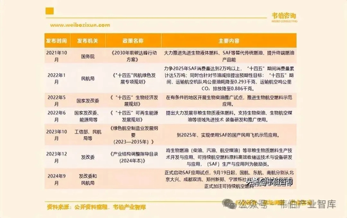 2021年发布《2030年前碳达峰行动方案》,将航空业纳入碳市场重点碳排放行业名单,大力推进SAF等替代燃料发展。