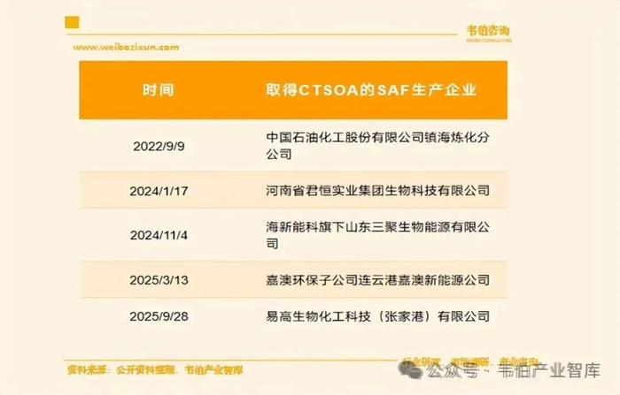 图表3:国内取得CTSOA的生物航煤生产企业概况