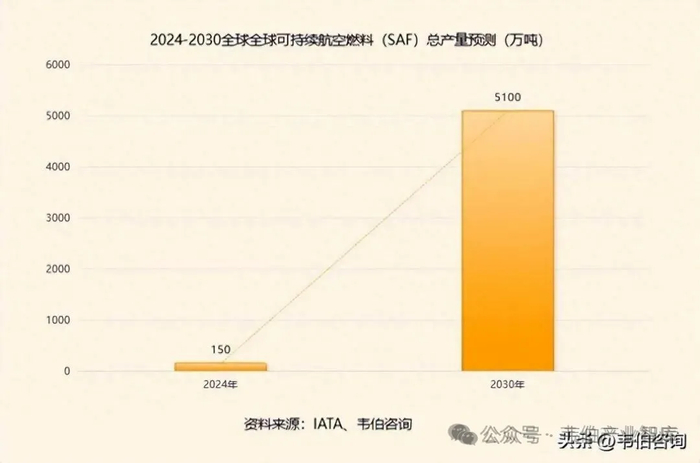 随着政策推动和技术进步和产品价格下降等因素的推动,预计到2030年,中国的可持续航空燃料(SAF)需求量将达到300万吨/年;