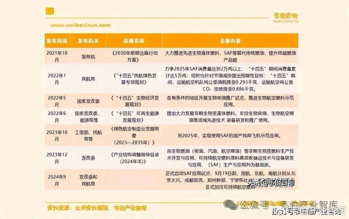 2023年10月,工业和信息化部、科技部、财政部、民航局联合印发《绿色航空制造业发展纲要(2023—2035年)》提出:到2025年,实现使用SAF的国产民用飞机示范应用。