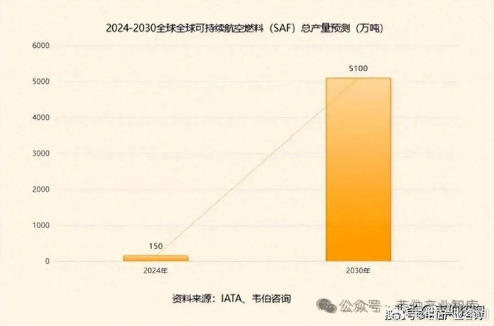 随着政策推动和技术进步和产品价格下降等因素的推动,预计到2030年,中国的可持续航空燃料(SAF)需求量将达到300万吨/年;