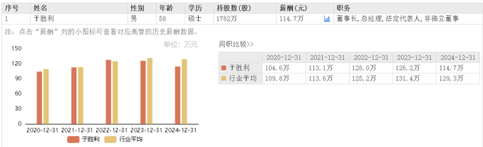 据东方财富网数据,北路智控董事长兼总经理于胜利2024年所获薪酬为114.7万元,相较上年薪酬126.2万元降薪9.11%。