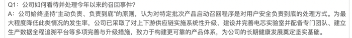 据其指出,为最大程度降低此类情况的发生率,公司已采取了对上下游供应链实施系统性升级、建设并完善电芯实验室并配备专门团队、建立生产数据全程追溯平台等多项完善与升级措施,致力于构建更可靠的产品体系,为公司的长期健康发展奠定坚实基础。