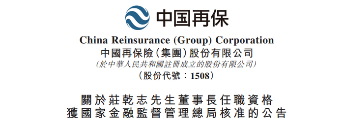 瑞财经 钟鸣辰 12月9日晚,中国再保险(01508)发布人事公告,宣布庄乾志董事长任职资格获国家金融监督管理总局核准。