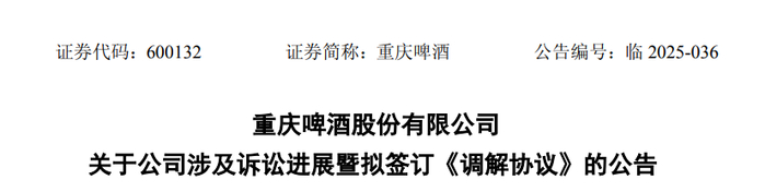 重庆啤酒表示,《调解协议》已经公司第十一届董事会第六次会议审议通过,尚需提交公司2025年第三次临时股东会审议。公司将在取得股东会批准后签署该协议。