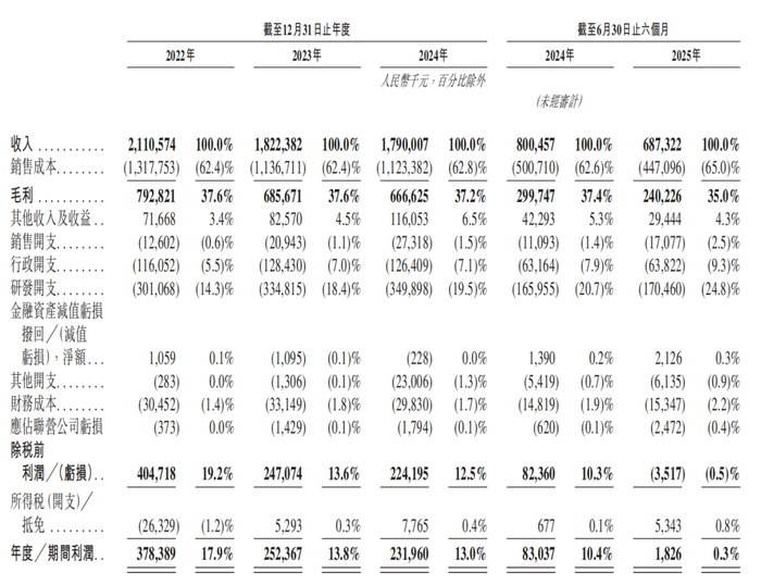 多个“全球第一”加持,但富瀚微的营收近三年确呈现下降趋势。2022年-2024年以及2025年1-6月(简称:报告期),富瀚微的营业收入分别为21.11亿元、18.22亿元、17.90亿元、6.88亿元,同期净利润分别为3.78亿元、2.52亿元、2.32亿元、182.6万元。