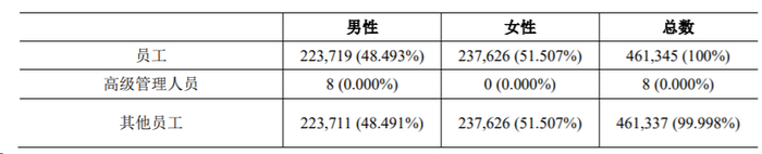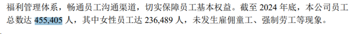 截至2025年12月31日,公司员工总数达461,345人,较2024年末的455,405人减少5940人。