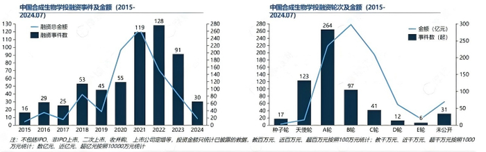 与市场规模同步演进的,是资本逻辑的深刻重构。2025年,合成生物领域的资本热潮褪去了前几年的浮躁,从“遍地撒网”转向“精准捕捞”,迈入商业现实检验期。摩熵咨询研报显示,中国合成生物学投融资在2021-2022年激增后,2023年起逐渐回归理性,投融资事件多集中在天使轮和A轮,早期融资占比达68%,资本更倾向于陪伴企业走向产业化。