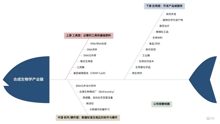 镜头拉远,作为一门多学科交叉的底层技术,合成生物学打破传统学科界限,融合生物学、工程学、计算机科学、化学等多个领域的核心逻辑,其应用场景早已超越医疗健康,延伸至化工生产、新材料、食品农业等多个行业。麦肯锡预计,未来全球经济活动中60%的物质产品可由生物技术进行生产;2030年至2040年,全球每年通过生物合成的材料、化学品及能源品将产生约2万亿美元至4万亿美元的直接经济影响。