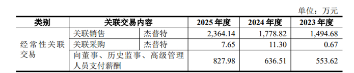 增速背后的风险点,是公司体量不小的关联交易。例如杰普特作为长进光子的第二大股东,持股比例约12.9%,同时也是其前五大客户之一,2022-2025年,长进光子对杰普特销售收入分别占总营收的18.37%、10.34%、9.28%、9.58%。