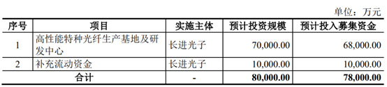 本轮IPO,公司扩张计划较为激进,募集资金中的6.8亿元重点投向'高性能特种光纤生产基地及研发中心'项目。根据项目规划,该项目总投资7亿元,拟配置14台高精密沉积车床及12座拉丝塔,达产后公司特种光纤年产能将达3.85万公里。对比2024年公司约7100公里的实际产量,此次扩产意味着36个月建设期内,公司拟实现5.4倍的产能。