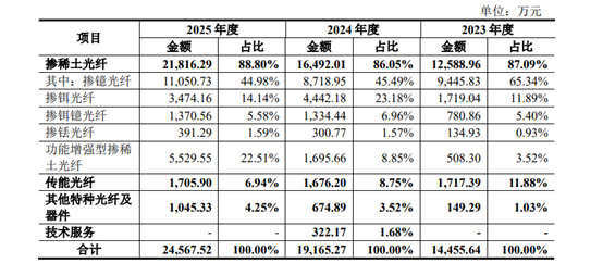 公司主要产品掺稀土光纤,是特种光纤的重要子类,是激光产业链上游核心光学材料,是各类光纤激光器、光纤放大器、光纤激光雷达的元器件,系锐科激光、创鑫激光、杰普特等主要激光器厂商供应商。