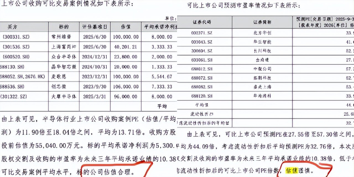 在估值论证中,康欣新材援引了近年半导体行业收购案例和北方华创、中微公司等8家沪深半导体设备上市企业市盈率数值,最终得出本次收购“估值谨慎、合理”的结论。