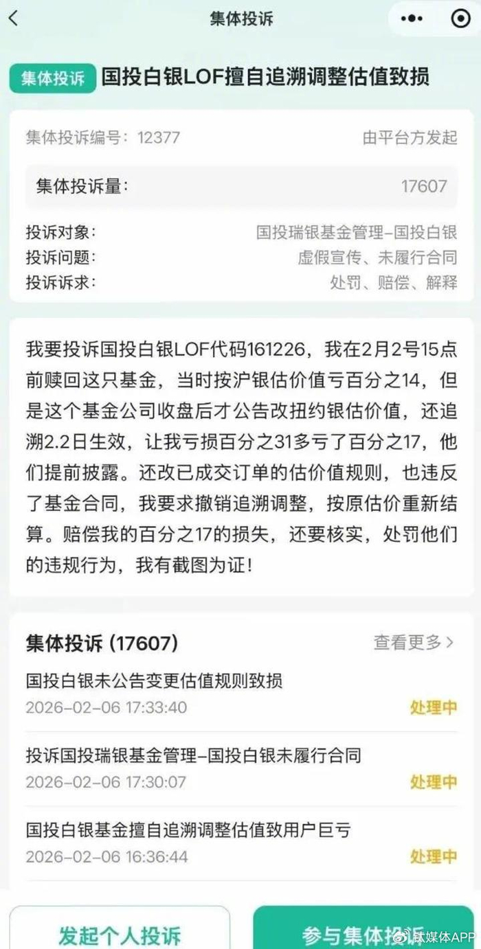 而哪怕国投瑞银事后做出解释称,当时市场环境脱离“正常”范畴,国际白银市场价格出现史诗级暴跌,单日波动幅度远超常规情况,如果继续沿用上期所白银期货的结算价估值,基金净值将显著高于底层资产在国际市场的真实价值,形成“虚高”假象,而虚高后的结果,就是上面提到的由部分基民承担远超他们损失的情况发生。