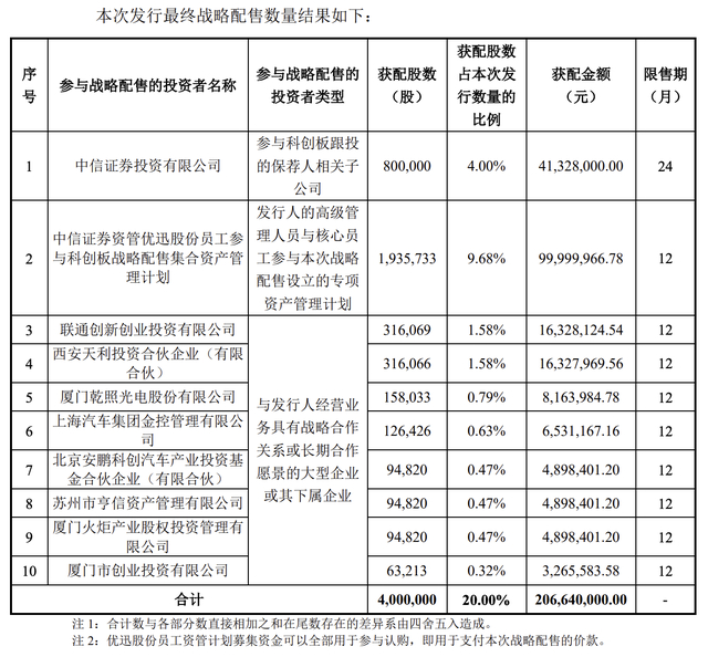 从本次发行最终战略配售数量结果来看,联通(联通创新创业投资有限公司)、上汽(上海汽车集团金控管理有限公司)、北汽(北京安鹏科创汽车产业投资基金合伙企业)等通信、汽车领域终端龙头,纷纷参与优迅股份本轮战略配售。