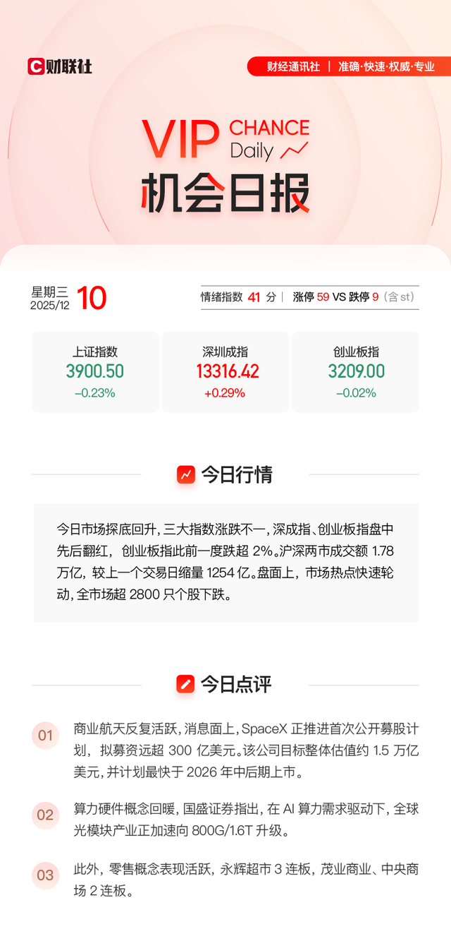 消息面上,SpaceX正推进首次公开募股计划,拟募资远超300亿美元。该公司目标整体估值约1.5万亿美元,并计划最快于2026年中后期上市。